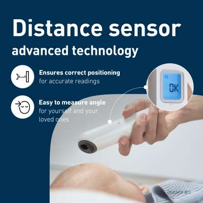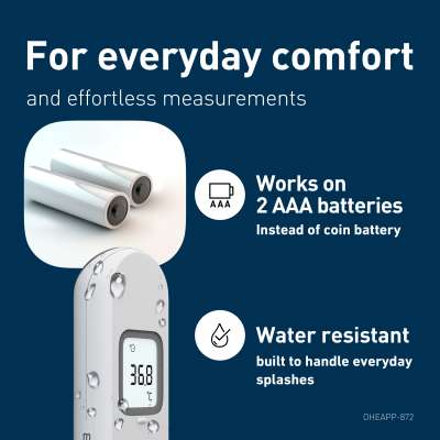 Designed for families fast, contact-free temperature checks with accuracy and ease. With advanced distance sensor technology, provides fast and accurate measurements without any contact. The distance sensor ensure correct positioning for reliable readings, and the next measurement can be taken within 1 second. The thermometer is quiet, easy to handle with one hand, and designed for quick use.It can measure forehead temperature and check liquid temperature. It saves the last 30 temperature measurements. It works on 2 AAA batteries.